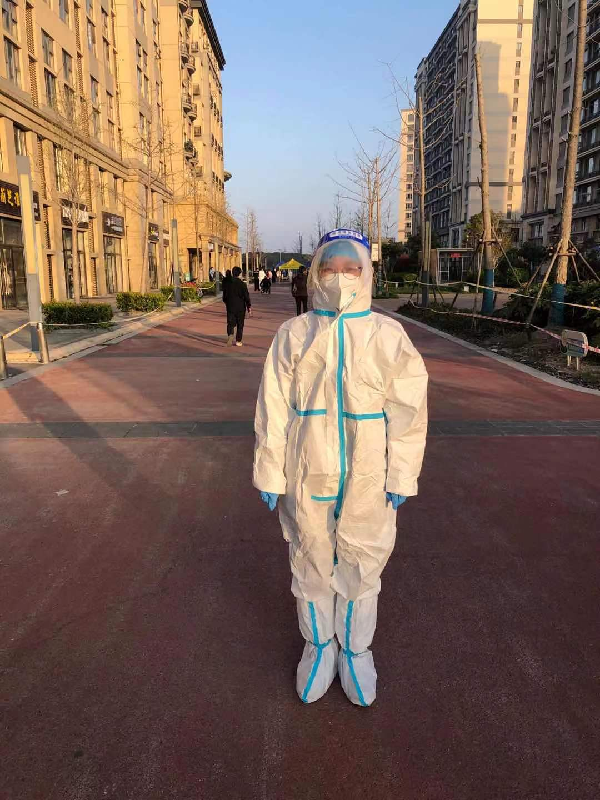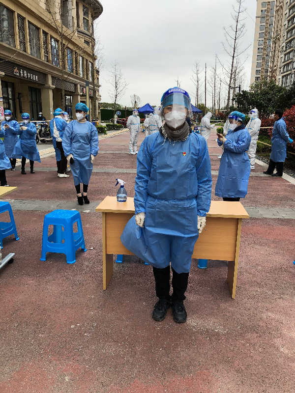 从3月16日开始,张勤老师在认真完成各项繁忙教育教学任务的同时,始终保持手机24小时畅通,以便及时接收居委的通知。疫情以来,她多次参加少湖社区核酸检测志愿者服务工作。穿上防护服,戴上口罩,站在小区广场上,一边维持秩序,让小区居民有序排队保持两米距离,一边检查排队居民的核酸码和健康码。当碰到不会下载核酸检测码的社区居民,她就手把手地教他们下载;当碰到一些用老人机不能下载核酸码或手机在外面不能使用网络的老年人群时,她就用自己的手机帮他们下载好,再带他们去扫码处扫码。少湖社区共有居民两千多人,整个小区一次核酸做下来要五个小时左右,再加上准备和收尾时间,每次五六个小时的站立,志愿者的工作必然是辛苦,但张老师说,在这关键时刻,成为一名志愿者,感到无比自豪!