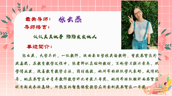 感谢全员导师制,让我与孩子们更亲密的互动,更平等的沟通,我将继续用心、用情做好导师的工作,让每个孩子在关爱中成长!
