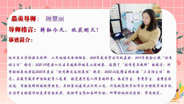 做一位人民教师是我一直以来的愿望,做一位被家长和孩子们喜爱的老师更是我为之奋斗的目标。而今,我有了一个全新的身份——导师。家长把孩子的成长托付给我,作为导师,我不应该辜负他们的信任与期待。孩子们的事应事无巨细,哪怕再小,都是重要的事情。