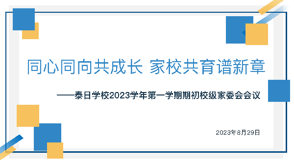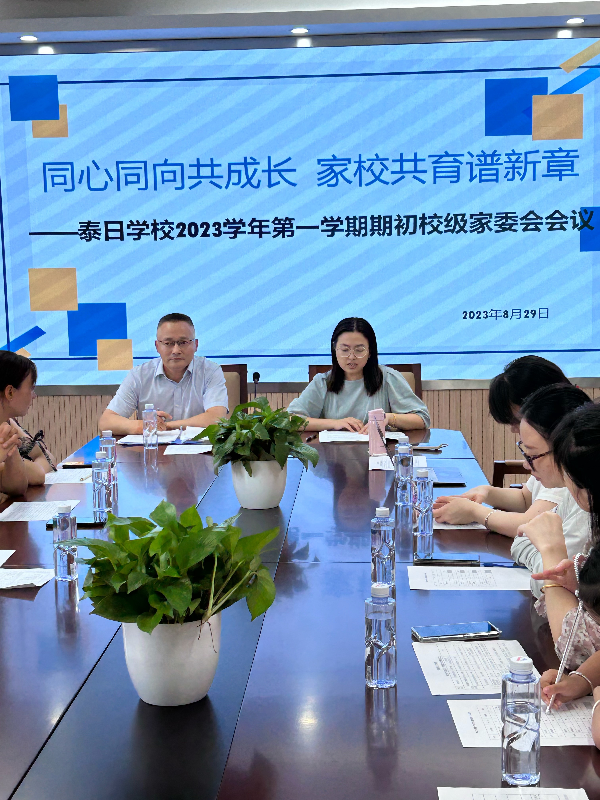 新学期即将到来,为了进一步加强学校与家庭在教育工作中的沟通与配合,我校于8月29日召开了2023学年第一学期期初校级家委会会议。本次会议由泰日学校政教主任邬春辉主持,泰日学校副校长金琳、总务主任戴春及新一届校级家委会成员共同参加。