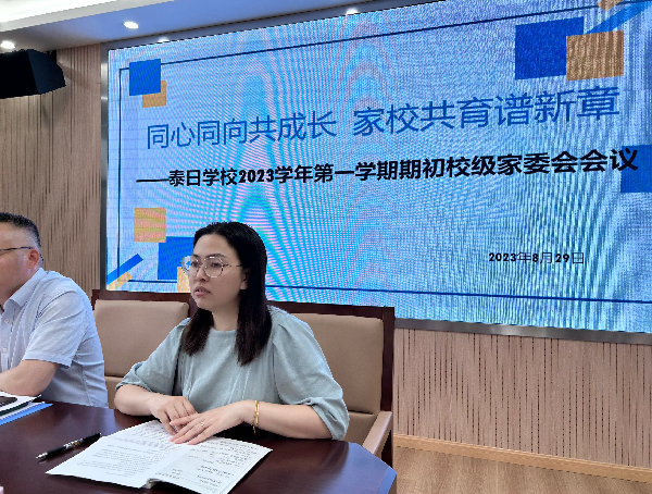 随后金琳副校长向家委会成员介绍了泰日学校2022学年学校的办学成效、学校在课程建设和成立德育工作坊的两大突破、2023届初三优秀的中考情况以及2023年德育工作计划,并提出了对新学期学校德育工作的新要求。