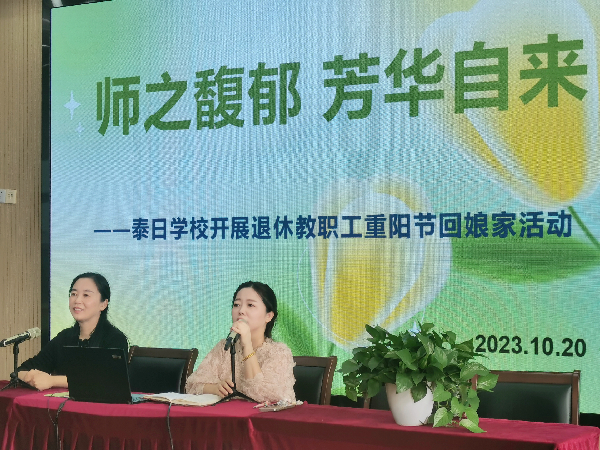 10月20日,泰日学校开展了退休教职工重阳节回娘家活动,活动由工会主席程清兰主持,130余名退休教职工参与出席。