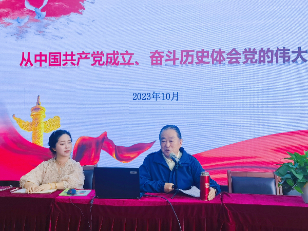 接着,老校长刘正才从“中国共产党成立”、“八一南昌起义”、“党的核心信仰”、“毛泽东胸中自有雄兵百万”四个方面,深度宣扬了中国共产党的奋斗发展史。老同志们深有感触,沐浴在党的光辉下,挥洒着对党的忠诚及对教育事业的热衷。
