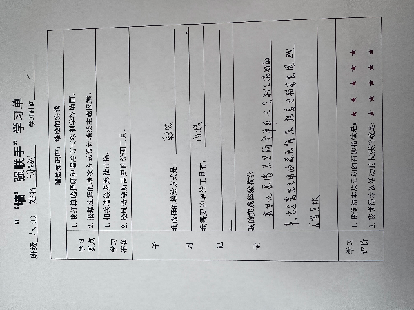 在艺术辅导员陆蓓的指导下,同学们立刻积极行动起来,根据本次项目化学习活动主题,围绕“爱国主义教育”精心设计了学习单。项目化学习可以追溯到杜威的“从做中学”教育思想,与陶行知的“教学做合一”的教学主张有异曲同工之处。在“做中学”“学中做”,以自身的体验和实践获取认知、实现成长,这是项目式学习的要旨所在。