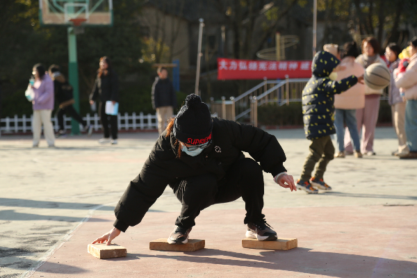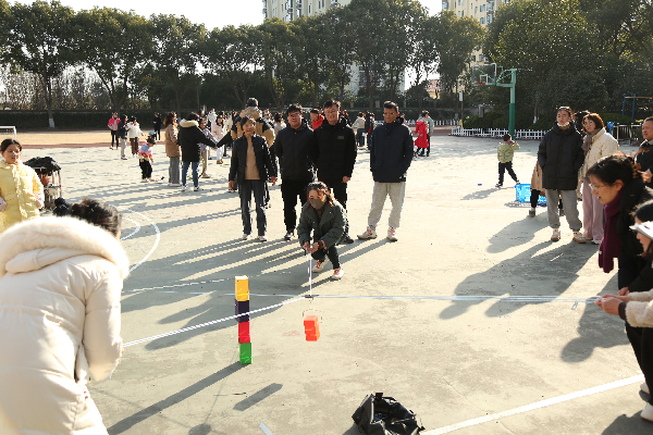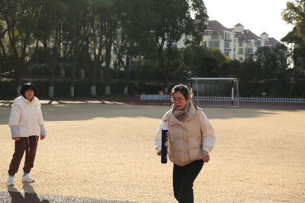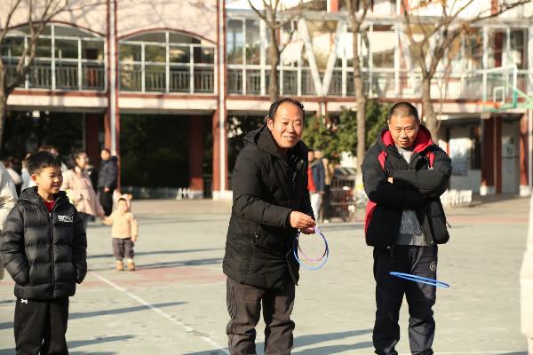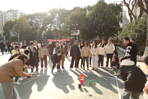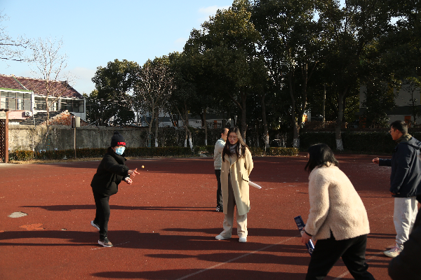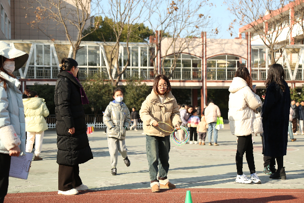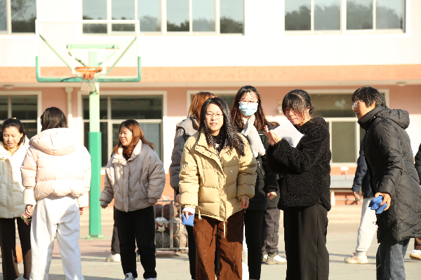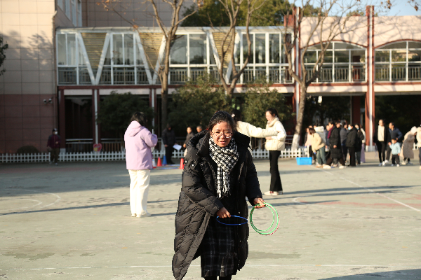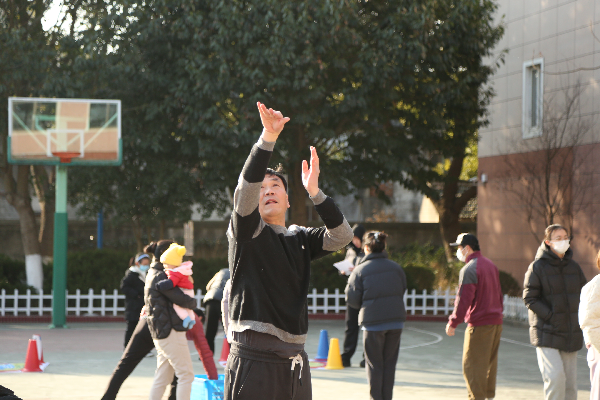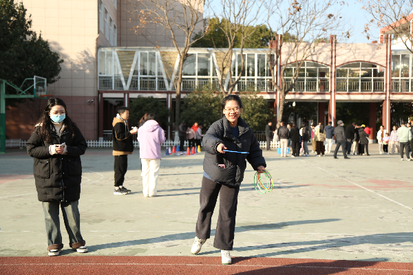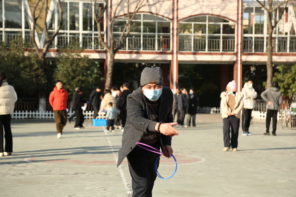 携手钻圈是这次趣味运动会新的比赛项目,教职工们都对这个比赛充满了期待和好奇,赛前也做了深入的研究和不断的训练。比赛开始后,只见小小套圈在老师们的身间快速传动,寒风中一股专注且团结的热情回荡在校园操场。经过一次次的穿梭配合,各个队伍凭借超快的速度、团结的精神获得了名次。