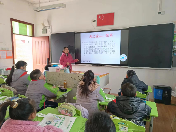 新型毒品种类繁多,层出不穷,极易对青少年造成诱惑和危害。为防范新型毒品对青少年的危害,共同构筑禁毒教育防线,2024年3月1日,奉贤区金汇镇禁毒办唐克平和夏剑英两位老师再一次来到泰日学校,为五年级学生带来了一节以“珍爱生命,远离毒品”为主题的班会课。