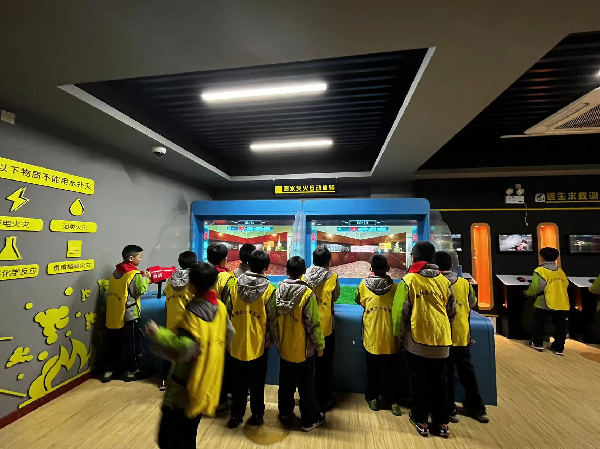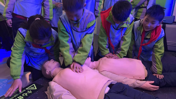 第二天,同学们来到公共安全教育体验中心,在场馆的各个区域,有序学习了解消防安全、高层逃生、溺水自救和应急救护等方面的公共安全技能。短短一上午,学生们学到了丰富的安全自救知识。