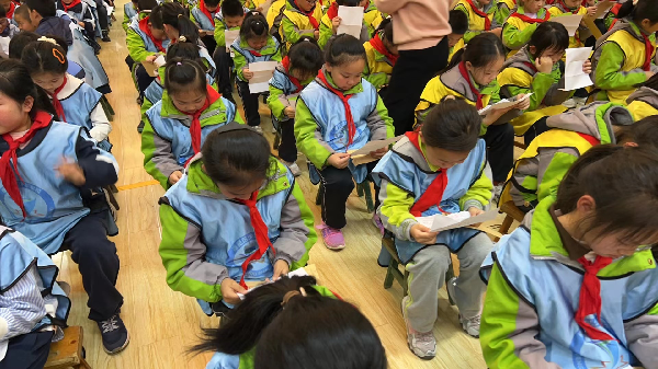 下午,少先队员们在活动厅举行了“领巾情,少年心”小学生十周岁生日纪念仪式。在仪式上同学们和老师互诉心事,感人至深,回想与老师们相处的点滴,同学们感动不已,将对老师的感谢融入一个个幸运星之中,融入和老师的热情拥抱中。朗读书信环节,孩子们从家长亲笔书写的家书中,感受到了父母的舐犊情深。副校长金琳代表全体教师为孩子们送上生日祝福,老师们为获得“优秀学员”称号的学生颁奖。