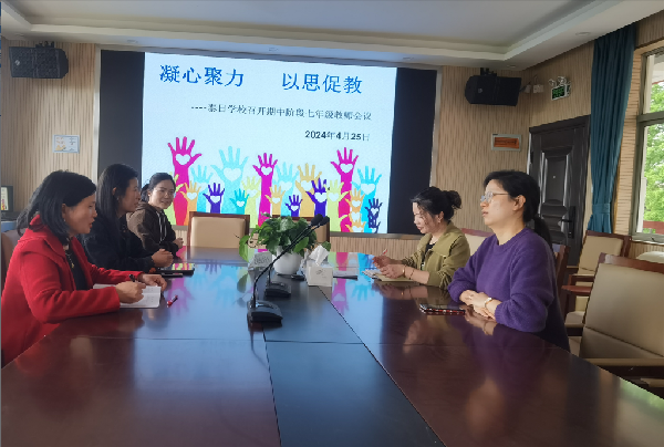 学期过半,为更好地总结半学期以来的教学情况,提升教育教学质量,泰日学校七年级组于4月25日下午在中学部三楼会议室召开期中阶段教师会议。本次会议由年级组长周彦老师主持,校分管领导陈建老师也参会指导。