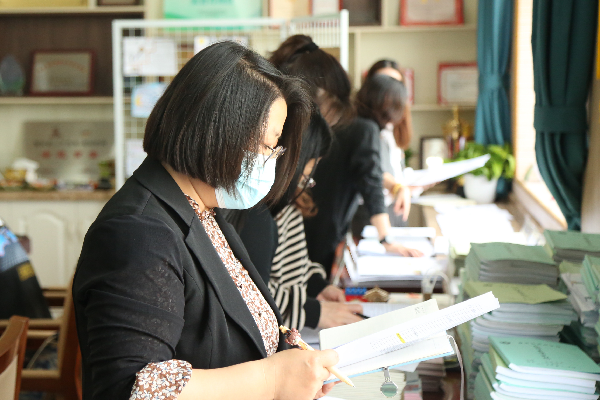 随后,视导团队查阅了学校课程计划、教学管理部门工作计划和小结、教研(备课)组管理、课时管理、教案管理、教学课堂管理、作业管理和考试测验管理方面的过程性材料。视导团队肯定了学校在课程与教学工作方面的细致管理,同时就课堂范式和课程评价等方面提出宝贵建议。