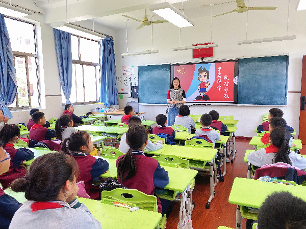 为加强学生对“邪教”的认识,提高学生“反邪教”意识,5月10日下午,奉贤区青少年实践教育中心的蒋海英老师为学生带来了一节意义非凡的班会课。