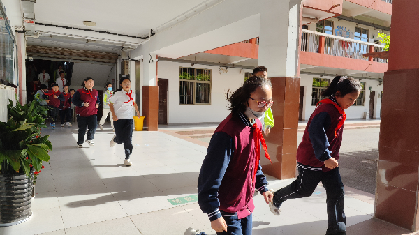 八点整,随着警报声响起,线路引导员老师迅速到达指定位置。教室内的学生立即警觉起来,在班主任和引导员老师的指引下,快速、有序地疏散到操场。整个演练过程,组织到位,所有学生在撤离途中听从指挥,有条不紊,不抢挡,不拥堵,达到了预期的演练效果。