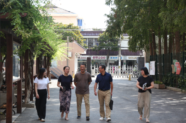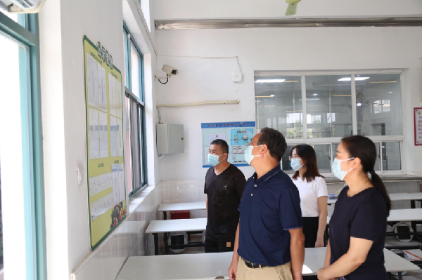 汤连华向检查组汇报了学校开学前的各项准备工作,也详细介绍了校园环境改善、学校办学现状和成效等情况。