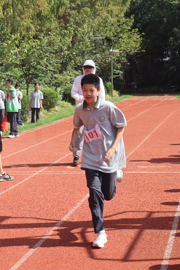 赛场上,少年们奔跑的身影、跳跃的姿态、协作的默契,构成了这个秋天最热血的画面。短跑赛道上,发令枪响,少年们像离弦的箭,风在耳边追,脚步不停歇,拼的就是这份冲劲!长跑赛场上,一圈又一圈,调整呼吸、咬牙坚持,冲过终点的那一刻,你就是赢家!跳远、跳绳项目中,挑战自我,超越极限,每个动作都凝聚着努力与付出!接力赛场上,一根接力棒,传递的是信任与默契,四人同心往前冲,班级的荣誉记心中!